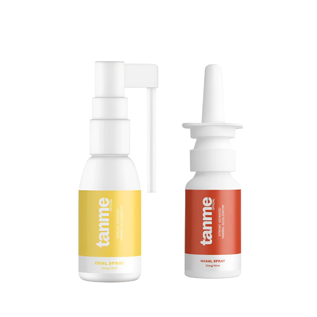 Get your glow on with the Tan Me Tanning Duo Bundle, featuring both our Strong Nasal Spray and Strong Oral Spray. Each contains 20 mg of active tanning peptides in 10 mL bottles, combining the fast-acting nasal formula with the convenient daily oral spray for complete tanning support.